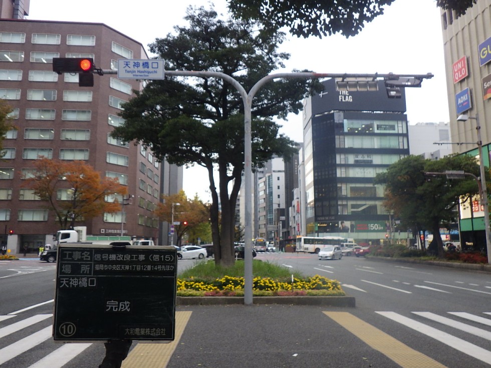 福岡市中央区の天神橋口交差点の信号機を新しくしました